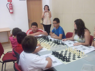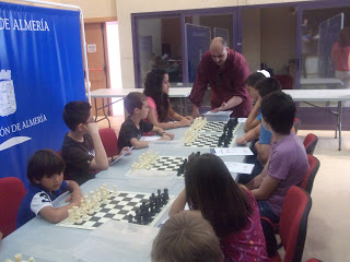 Otras Noticias Encuentro educativo de ajedrez- Unos 70 niños se dieron cita en las instalaciones del centro de día de Pechina. Con la organización de la Diputación y la colaboración de la Delegación almeriense se realizó esta jornada de convivencia ajedrecistica. Al llegar los participantes se dividieron en grupo para recibir una pequeña clase teórica de ajedrez GRUPO 2 – MONITOR MIGUEL ALVAREZ GRUPO DE TECNIFICACIÓN- MONITOR FRANCISCO GALINDO GRUPO 3- MONITOR LUIS DOUCET GRUPO 4 – MONITOR JOSE ANTONIO TITOS GRUPO 4- MONITOR JOSE MIGUEL CANTOS GRUPO 5- MONITOR JAVIER NAVARRO GRUPO 7- MONITOR ROBERTO ESCUDERO