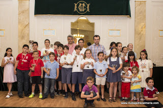 Otras Noticias CAMPEONATO PROVINCIAL JUVENIL 2014 CAMPEONATO INDIVIDUAL JUVENIL (SUB18) DE ALMERIA TEMPORADA 2013-2014 B A S E S 1. ORGANIZACIÓN: El Campeonato Individual Provincial de Almería Juvenil, está organizado por la Delegación Almeriense de Ajedrez de la FADA y colabora el Club Ajedrez Roquetas. 2. PARTICIPANTES: Jugadores/as federados en Almería en la actual temporada nacidos/as después de 1996 (inclusive). 3. TÍTULOS: Habrá en disputa 2 Títulos: Campeón Juvenil y Campeona Juvenil Femenina. Darán el derecho de representar a Almería con todos los gastos pagados en los Campeonatos de Andalucía de la categoría. Además, según las plazas por licencias, tendremos derecho a alguna plaza más. 4. SISTEMA DE JUEGO: SUIZO A SEIS RONDAS • Ritmo de Juego: 50 minutos + 10 segundos adicionales, a finish. • Emparejamiento: Gestión Informática del Programa Swiss Manager. • Desempates: (B. Total, B. Mediano y Progresivo) • El torneo es válido para ELO FADA. 5. LUGAR DE JUEGO: • Sede Club Ajedrez Roquetas. Pabellón Infanta Cristina (junto a Plaza de toros) 6. FECHAS Y HORARIO: • Sábado, 25 de enero: 1ª RONDA: 10,00 h. – 2ª RONDA: 12,15 h. 3ª RONDA: 16,30 h. – • Domingo, 26 de enero: 4ª RONDA: 10,00 h. – 5ª RONDA: 12,15 h. 6º RONDA 16.30 h 7. INSCRIPCIONES: • Gratuita. Habrá que estar con licencia en vigor por un club o como independiente. Para federarse al teléfono 606364479 ( David ) o al e-mail ajevicar@gmail.com • Las inscripciones se enviarán todas al siguiente e-mail: javigarrido2@gmail.como al teléfono 661751378. • La fecha límite de inscripción será el Viernes 24 de enero a las 16:00 h. Las recibidas posteriormente podrán ser emparejadas en segunda ronda. El Delegado Provincial José David Cabrera Rodríguez