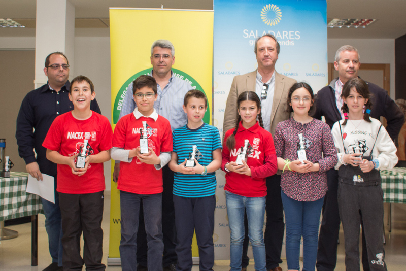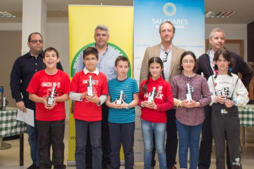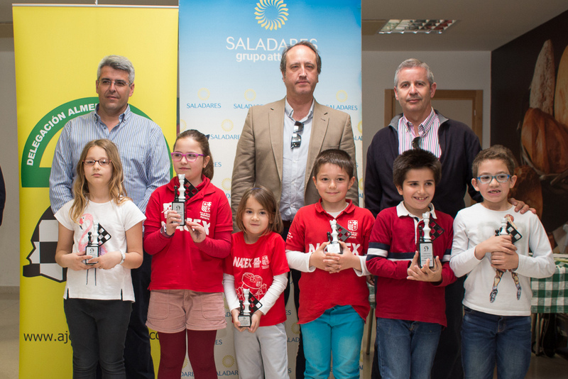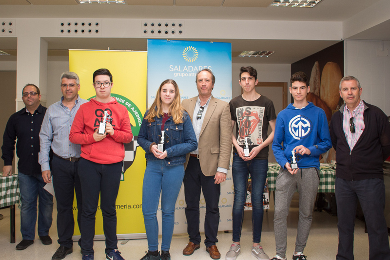 Edades Edades Sub 08 Edades Sub 10 Edades Sub 12 Edades Sub 14 Edades Sub 16 Resultados Finaliza el campeonato por Edades de Almeria 2016/17 12 Y 19 marzo 2017 Colegio Saladares Las categorías que se han disputado han sido la Prebenjamin, Benjamin, Alevin, Infantil y Cadete. Con una participación de más de 70 niños y niñas de 5 a 16 años de edad. El campeonato tuvo su inicio el pasado sábado día 12 de marzo, jugándose 4 rondas y ha finalizado este sábado 19 con otras dos rondas. Un total de 6 rondas disputadas íntegramente en el Colegio Saladares, que resultó ideal para los jugadores y acompañó el tiempo. Los jugadores que se llevaron trofeos han sido los siguientes: Categoría PreBenjamín Campeona femenina y absoluta: Carmen Ponce Martínez (Club Indalo Almería) 4,5 puntos Subcampeona femenina: Ekaterina Valdivia Khudiakova (Club de Roquetas) 4 puntos Tercera femenina: Natalia Portero Bravo (Club Indalo Almería) 1 puntos Campeón masculino: Javier Latre Rodríguez (Circulo Mercantil Almería) 4,5 puntos Subcampeón masculino: Pablo Méndez Alba (Circulo Mercantil Almería) 4 puntos Tercero masculino*: Gabriel Alexandru Ciotoracu (Club Indalo Almería) 4 puntos Categoría Benjamín Campeón masculino y absoluto: David Torres López (Club Indalo Almería) 5,5 puntos Subcampeón masculino: José Manuel Morales Carmona (Club Indalo Almería) 5 puntos Tercero masculino: Dario Raya Hidalgo (Club de Roquetas) 4,5 puntos Campeona femenina: Claudia Mullor Peña (Club de Benahadux) 4 puntos Subcampeona femenina: Alba Barranco López (Club Indalo Almería) 3 puntos Tercera femenina: Silvia Cabrera Valverde (Club de Vicar) 3 puntos Categoría Alevín Campeón masculino y absoluto: Ciro Revaliente Montoya (Club Indalo Almería) 6 puntos Subcampeón masculino: Luis Vara Soler (Club el Rey de Huercal) 4,5 puntos Tercero masculino: David Llena Velarde (Club Frigan de Vicar) 4 puntos Campeona femenina: Aitana Portero Bravo (Club Indalo Almería) 4 puntos Subcampeona femenina: Yulia Valdivia Khudiakova (Club de Roquetas) 3 puntos Tercera femenina: Andrea Fernández García (Club Indalo Almería) 1 puntos Categoría Infantil Campeón masculino y absoluto: José Manuel Pérez Jiménez (Club de Roquetas) 4 puntos Subcampeón masculino: Alfredo Clemente Chen (Club Frigan de Vicar) 4 puntos Tercero masculino: Alberto Javier Amate Sánchez (Club Indalo Almería) 3 puntos Campeona femenina: Laura Wang Qiu (Club Indalo Almería) 3 puntos Subcampeona femenina: Sonia Rodriguez Navarro (Club de Benahadux) 1 puntos Categoría Cadete Campeona femenina y absoluta: Ana Del Carmen Redondo Benavente (Reverte Minerals) 3,5 puntos Campeón masculino: Francisco Merelo Garcia (Club de Roquetas) 2,5 puntos Subcampeón masculino: Jose David Cabrera Valverde (Club de Vicar) 2 puntos Tercero masculino: Angel Vico Moreno (Club de Roquetas) 1,5 puntos Las clasificaciones finales y resultados se pueden consultar en: www.chess-results.com