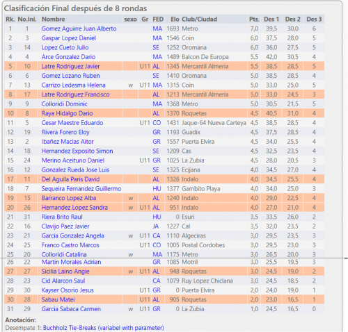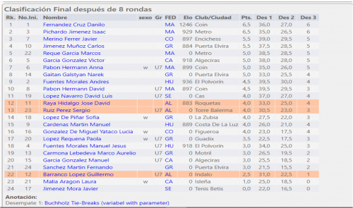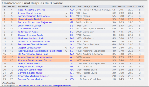En sub14 Ciro Revaliente no tuvo rival ganando el torneo con 7,5 de 8. También en sub 14 segunda clasificada femenina Aitana Portero.