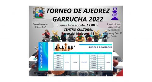 Actualidad Competiciones Próximas Competiciones Torneo de Ajedrez Garrucha 2022 El próximo 4 de agosto se celebra el torneo de Garrucha a las 17:00 en el centro Cultural.