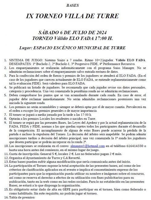 Actualidad Competiciones Próximas Competiciones IX Torneo Villa de Turre Dejamos las bases del Torneo de Turre que se celebrará el próximo sábado 6 de julio.