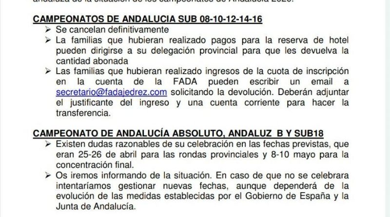 Actualidad FADA Otras Noticias Portada Información sobre la situación de los campeonatos de Andalucía ante la prórroga del estado de Alarma. ... Read more