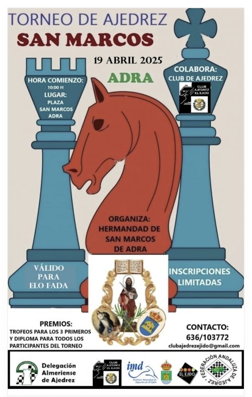 El próximo 19 de abril se celebrará en Adra el Torneo de la Hermandad de San Marcos comenzando a las 10 de la mañana. Bases: