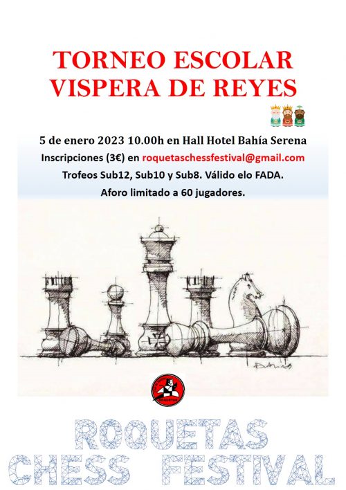 El año comienza con el Torneo Escolar celebrado en Roquetas de Mar como parte de su Festival de Ajedrez el próximo 5 de enero. Dejamos el cartel y las bases a continuación.