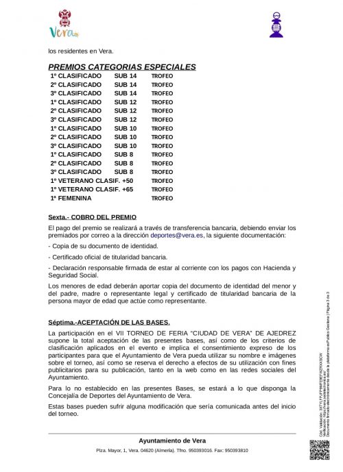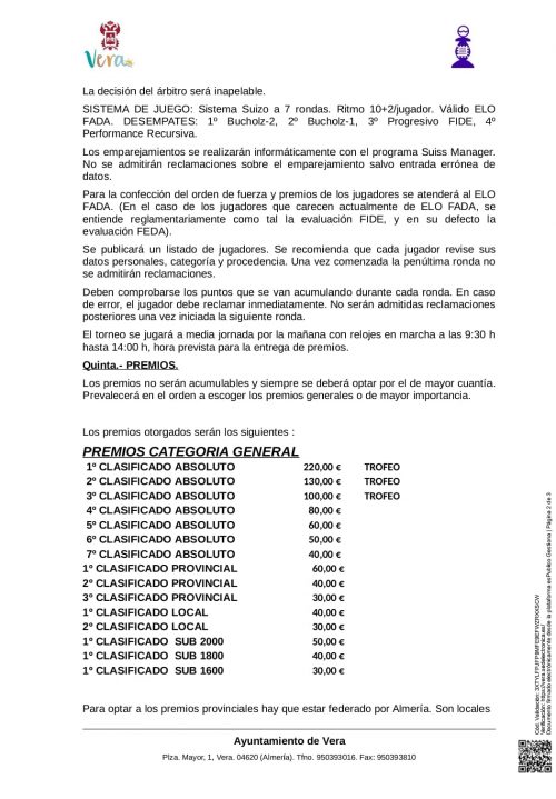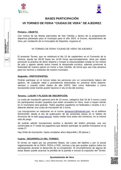 El torneo se celebrará el 15 de septiembre en el Convento de la Victoria en Vera. Cartel y Bases.