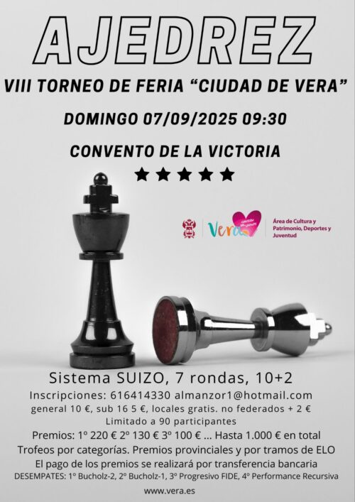 El torneo se celebrará el 7 de septiembre a las 9:30 horas en el Convento de la Victoria, Vera. Cartel y Bases.