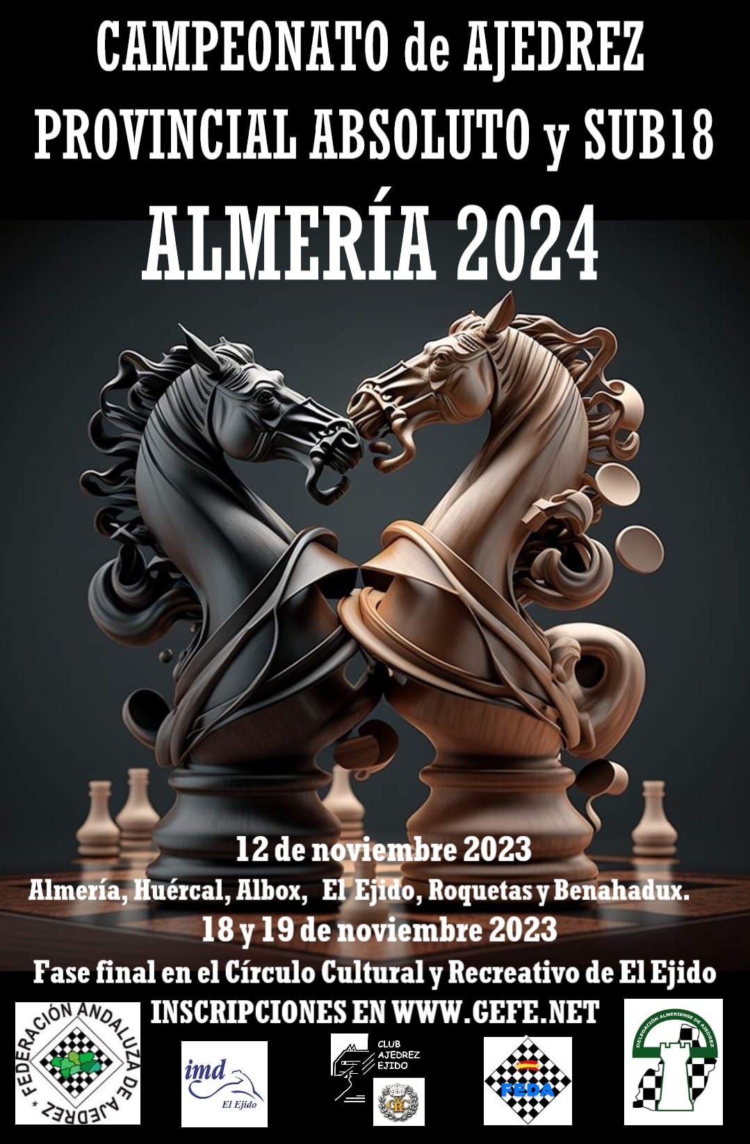 - INSCRIPCIONES: Gratuita. Todos los jugadores deben estar federados en 2023 a través de la Delegación Almeriense de Ajedrez y figurar como tal en GEFE.
