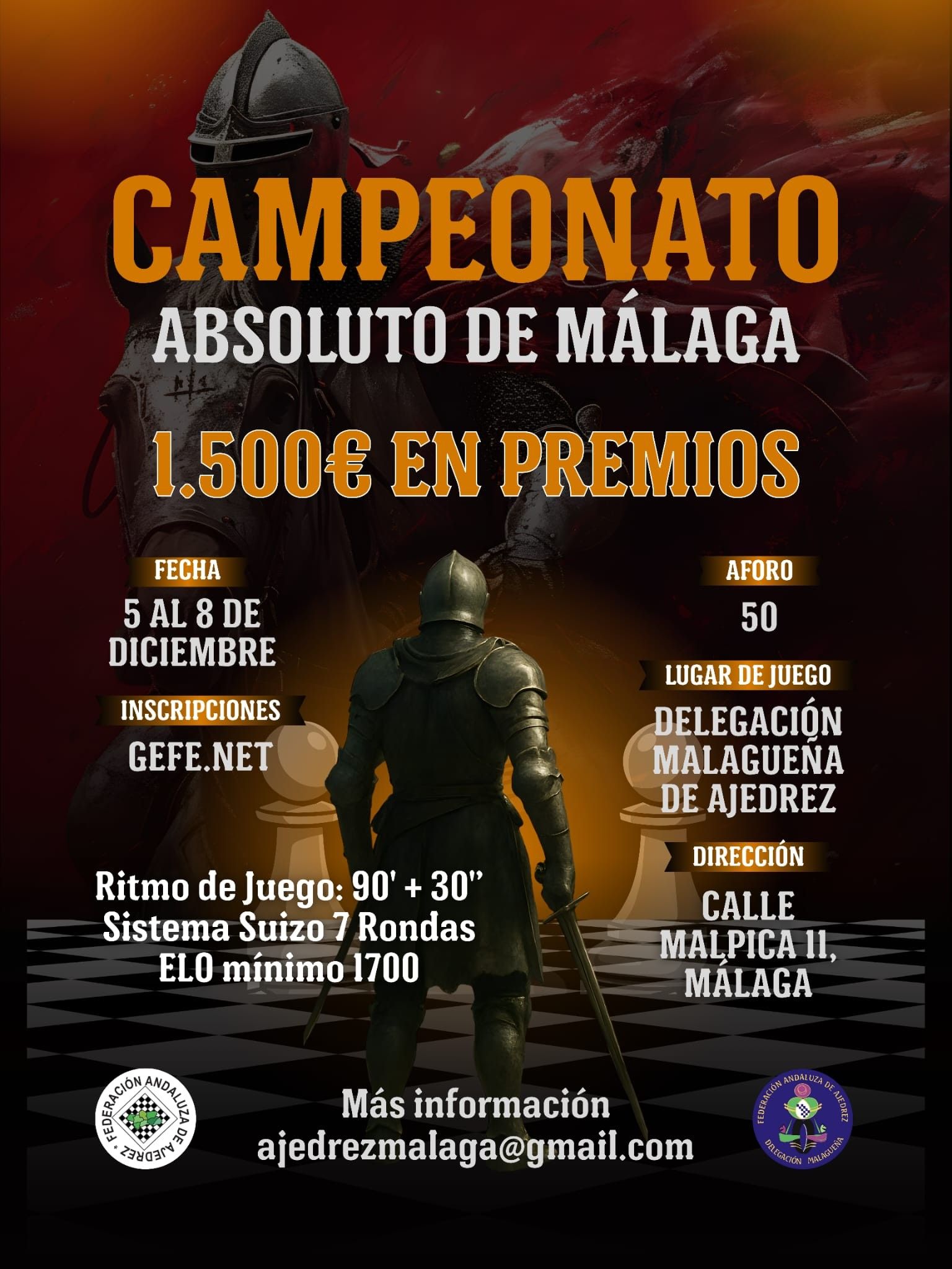 - Correo electrónico: ajedrezmalaga@gmail.com