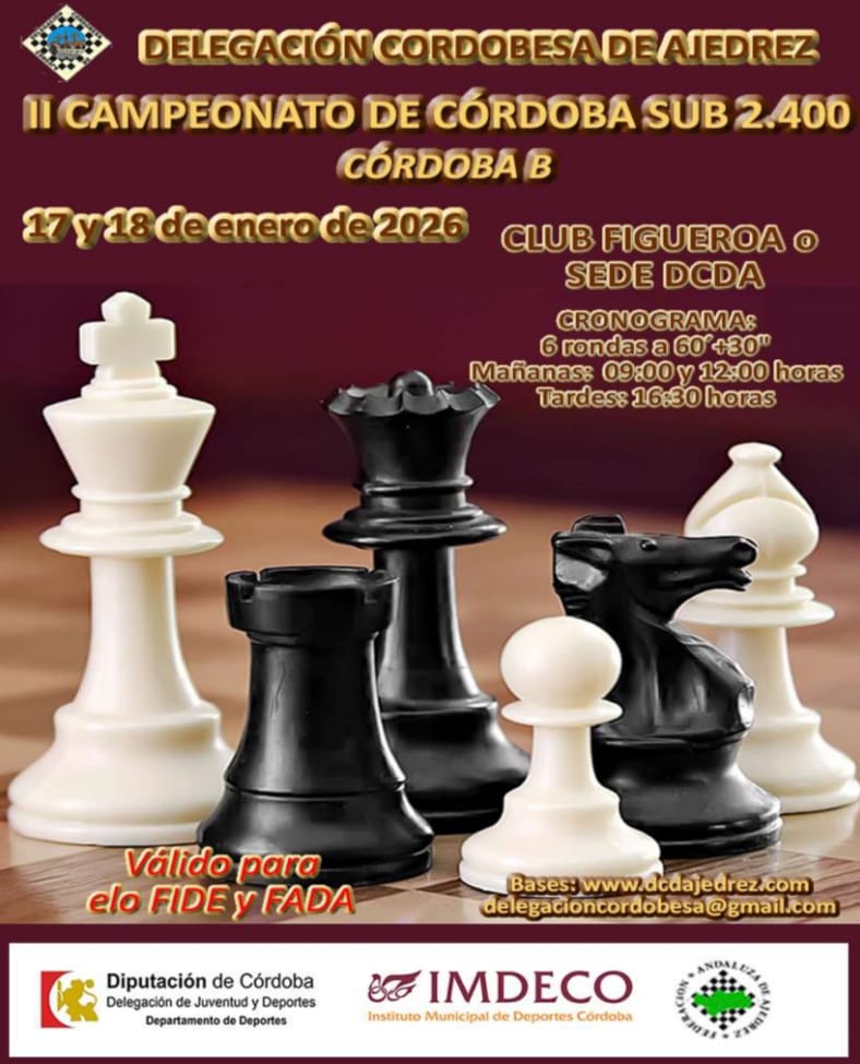 Cualquier jugador federado en Córdoba en la temporada 2026 y que tenga menos de 2400 ELO en las